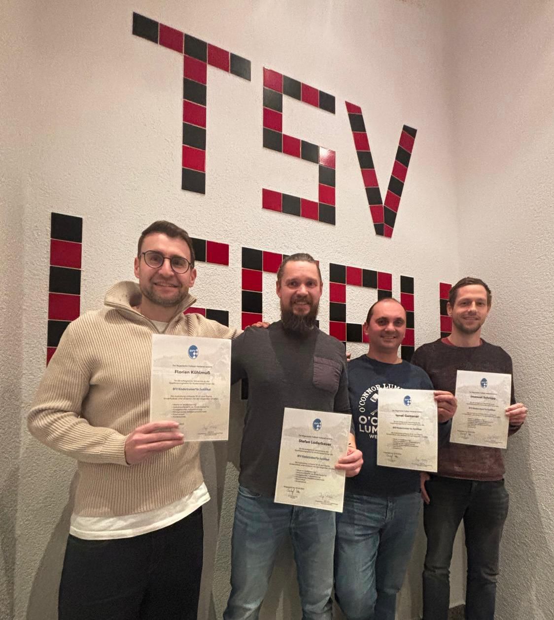 Starke Basis für unseren Nachwuchs 23. Feb. 2026 | Abteilung Fußball Unsere Bambini- und F-Jugendtrainer Florian Kühlmuß, Stefan Loderbauer, Ionel Gemanar und Imanuel Schropp nahmen im Herbst 2025 erfolgreich an der BFV-Kindertrainer-Ausbildung in Wiggensbach teil. Vielen Dank für Euren Einsatz!